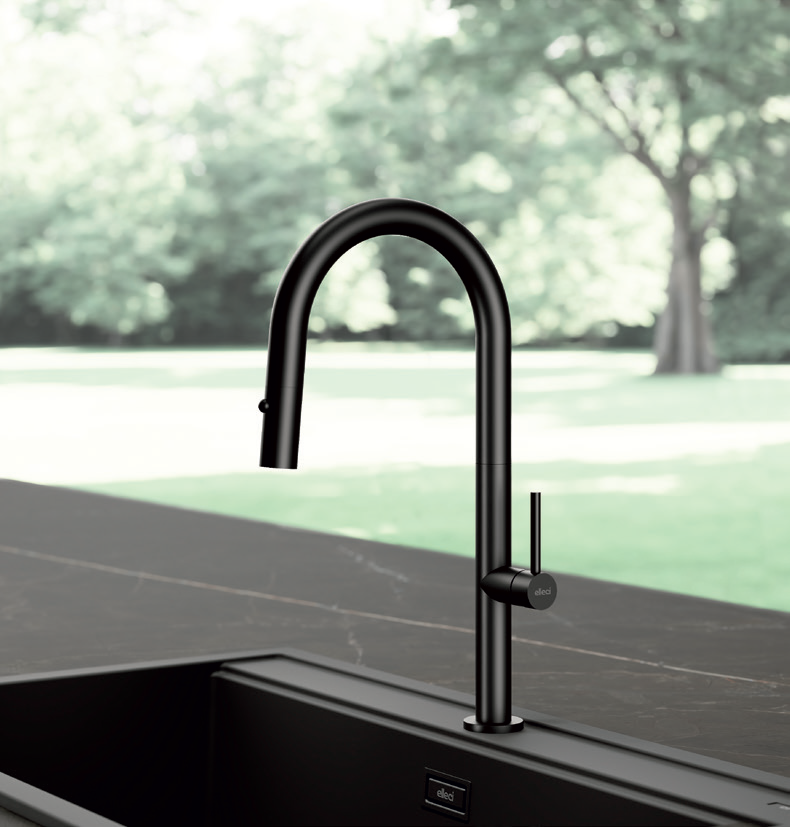 Bateria KAI to połączenie nowoczesnego designu z najwyższą funkcjonalnością. Jej łukowata forma w matowej czerni doskonale wpisuje się w estetykę nowoczesnych, loftowych i industrialnych kuchni. Prosta linia korpusu oraz boczny uchwyt gwarantują wygodną i intuicyjną obsługę.