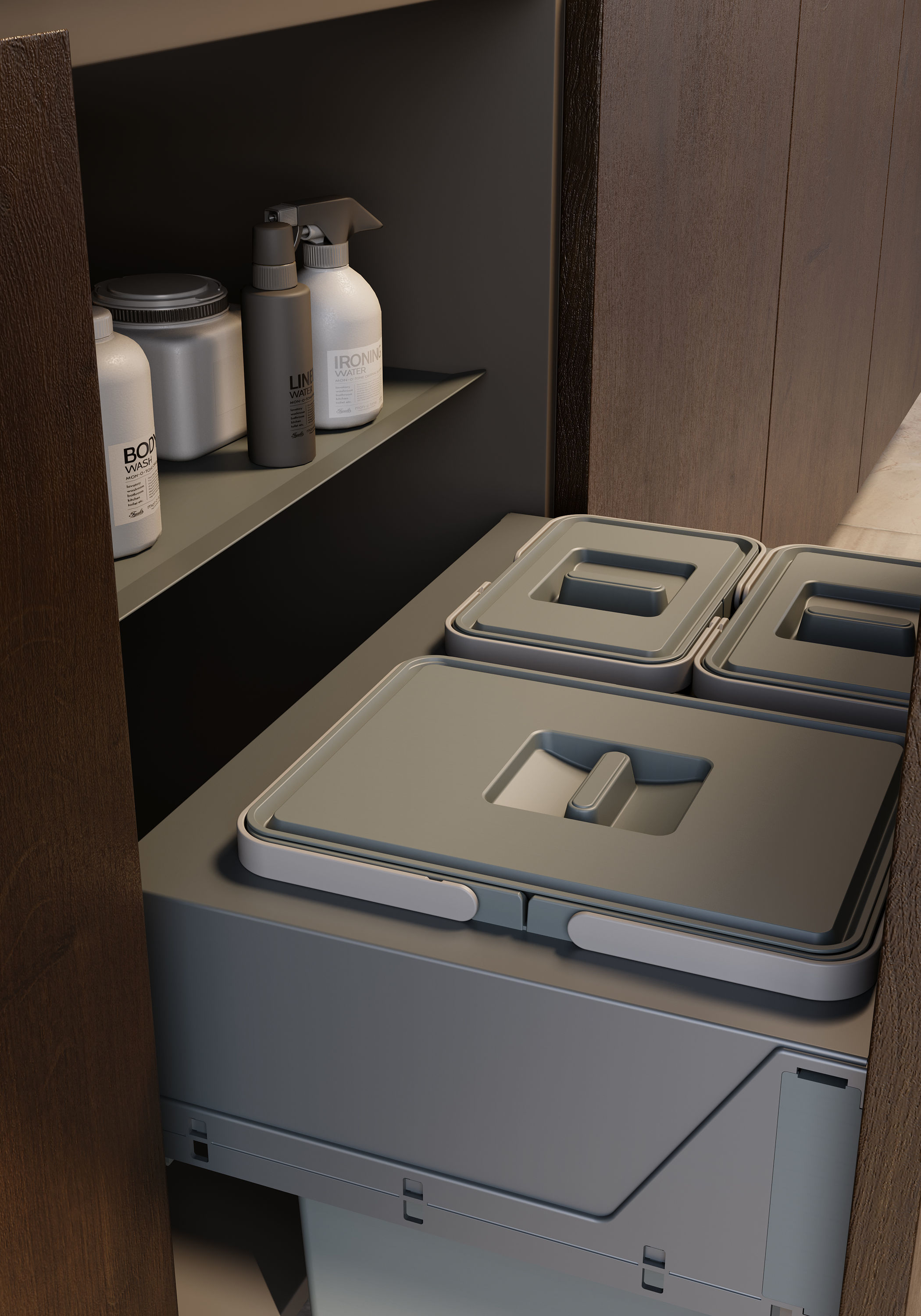 Zintegrowane sortowniki allora to kompletny i solidny system. Zaprojektowany z myślą o prostej i szybkiej instalacji nie wymagającej montażu szuflady. Front jest mocowany na ramie selektora, z praktycznym i wytrzymałym systemem regulacji 3D. Zastosowane materiały są łatwe do utrzymania w czystości. Ciche prowadnice firmy Hettich Quadro V6 to gwarancja wieloletniego komfortowego użytkowania.Wyposażone są w hamulec i dociąg, obciążalność wynosi 30 kg.