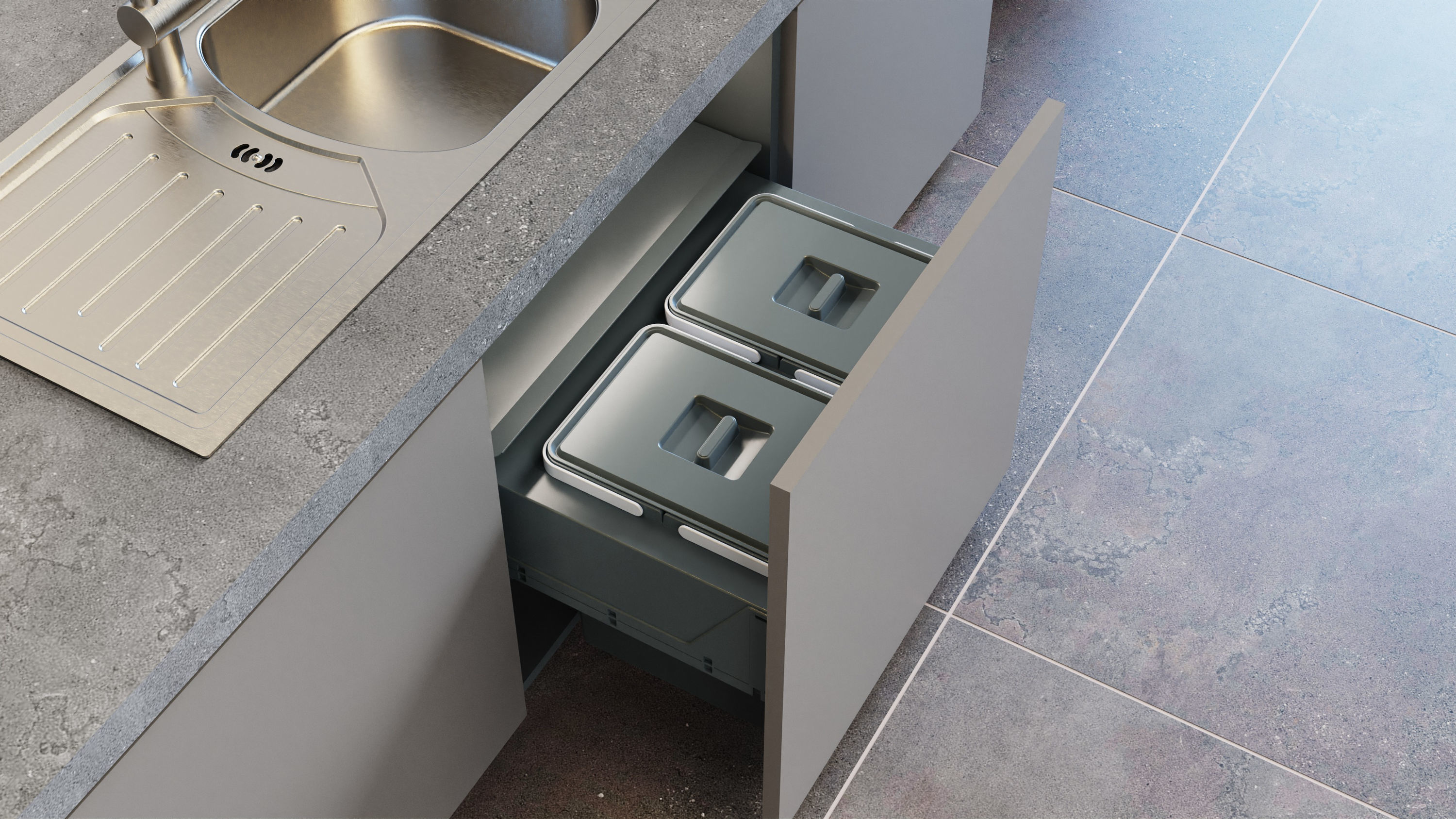 Allora Sortini to linia pojemników na odpady do szafek pod zlewozmywak. To wygodny, prosty i estetyczny sposób na śmieci.