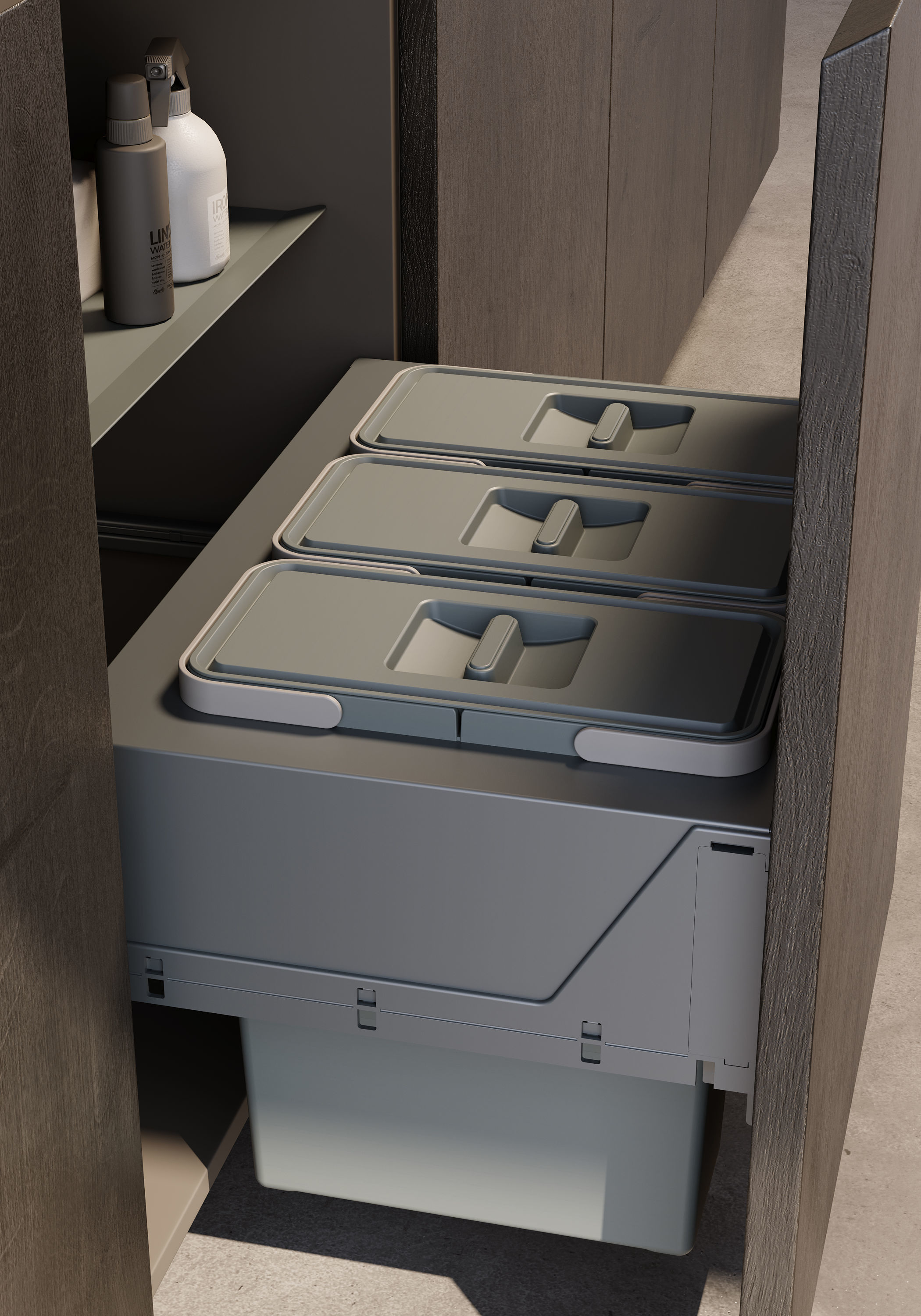 Zintegrowane sortowniki allora to kompletny i solidny system. Zaprojektowany z myślą o prostej i szybkiej instalacji nie wymagającej montażu szuflady. Front jest mocowany na ramie selektora, z praktycznym i wytrzymałym systemem regulacji 3D. Zastosowane materiały są łatwe do utrzymania w czystości. Ciche prowadnice firmy Hettich Quadro V6 to gwarancja wieloletniego komfortowego użytkowania.