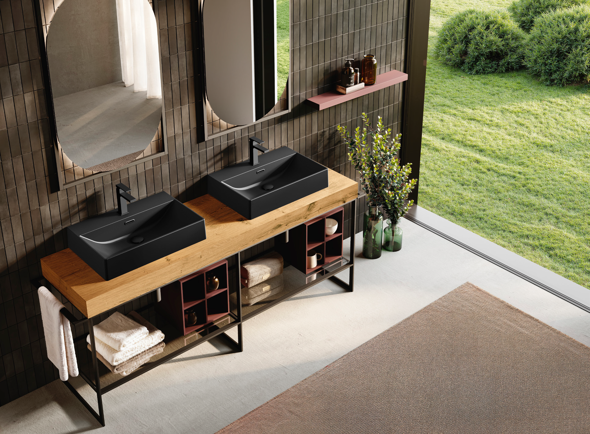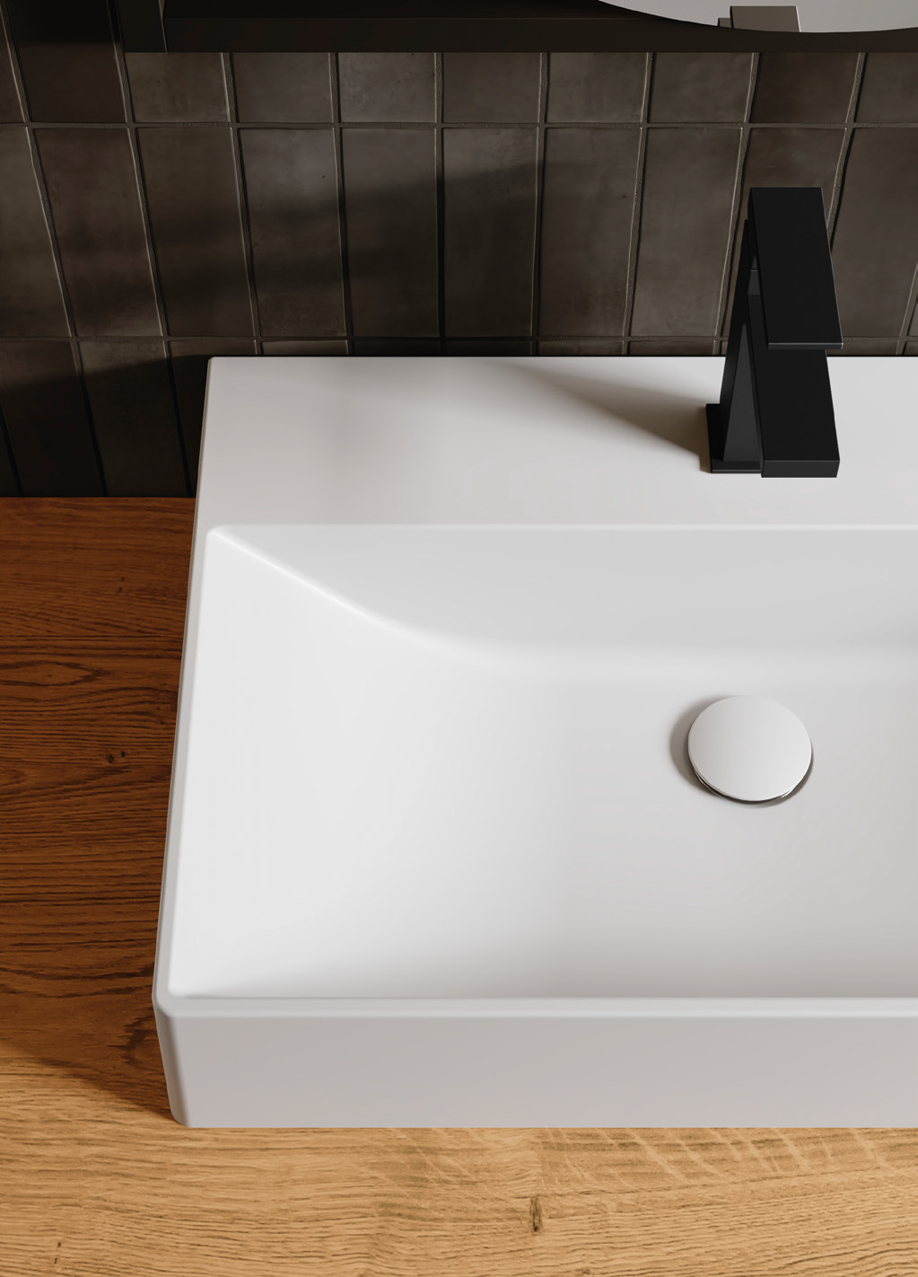 W Puro T 80 umywalka staje się głównym elementem kompozycji – cienkie krawędzie i precyzyjne profile, możliwe dzięki technologii Duratek, nadają jej lekkości i nowoczesnego wyrazu. To design, który nie potrzebuje nadmiaru – prostota mówi tu najwięcej. Geometryczna, prostokątna forma z łagodnie zaokrąglonym wnętrzem tworzy wyrafinowaną równowagę. Puro T 60 to minimalistyczna, ale natychmiast rozpoznawalna propozycja – idealna do współczesnych, świadomie zaprojektowanych przestrzeni.